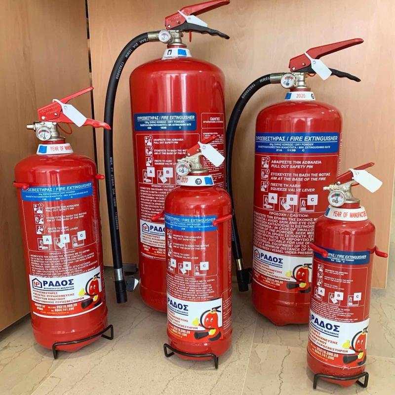- Πυροσβεστικά είδη: Πυροσβεστήρες παντός τύπου, πυροσβεστικές φωλιές, πυροσβεστικοί σταθμοί, καθώς και εξοπλισμός ασφαλείας για επαγγελματικά οχήματα.
